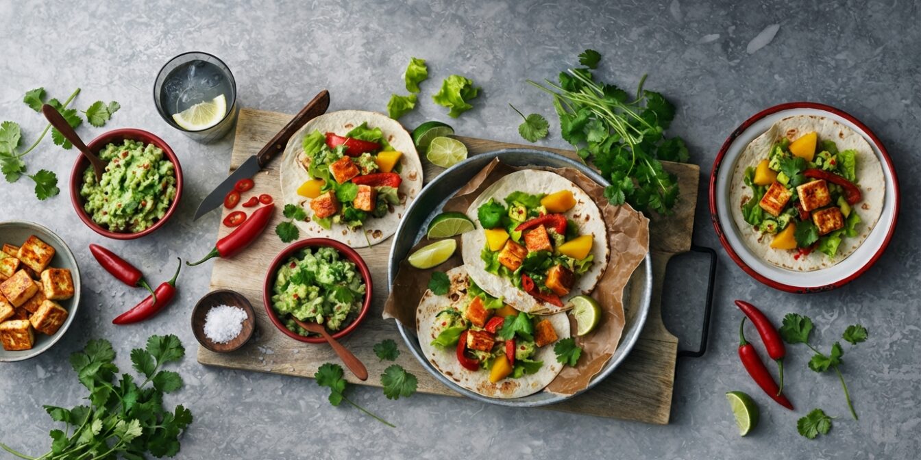 Halloumitacos med tomatsalsa och guacamole
