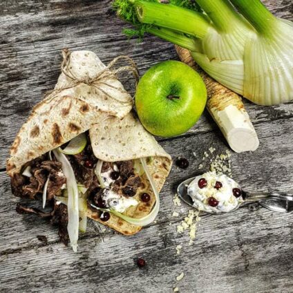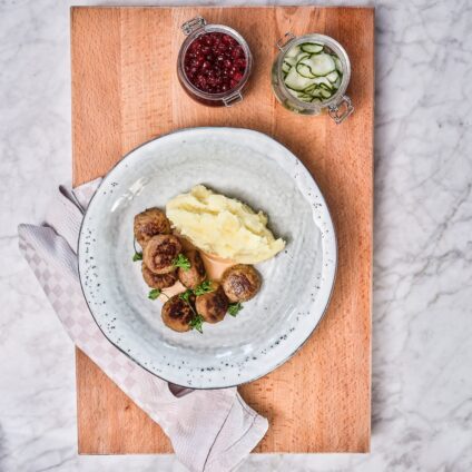 8. Plumsa ner rulladerna i såsen så att de blir lite varma. Servera med potatisen och någon sallad/grönsak.