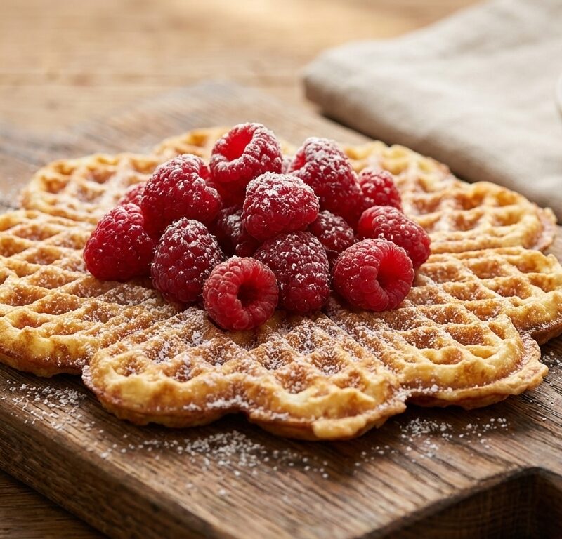 4. servera våfflorna nygräddade med bär eller sylt och vispad grädde eller glass.