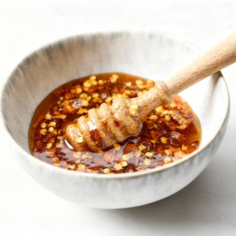 1. Häll honungen i en kastrull och tillsätt chiliflakes. Värm upp i cirka 2-3 minuter under omrörning. Låt det inte börja koka.