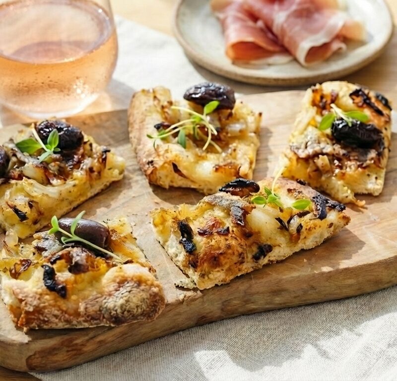 Tänk dig en blandning mellan en lyxig pizza och en matig lökpaj, sprungen ur den franska rivierans solstekta kök. Pissaladière är en rustik provensalsk klassiker med smaker av karamelliserad lök, sardeller och svarta oliver. Perfekt som tilltugg till fördrinken. Här har vi gjort det enkelt och köpt färdig pizzadeg.